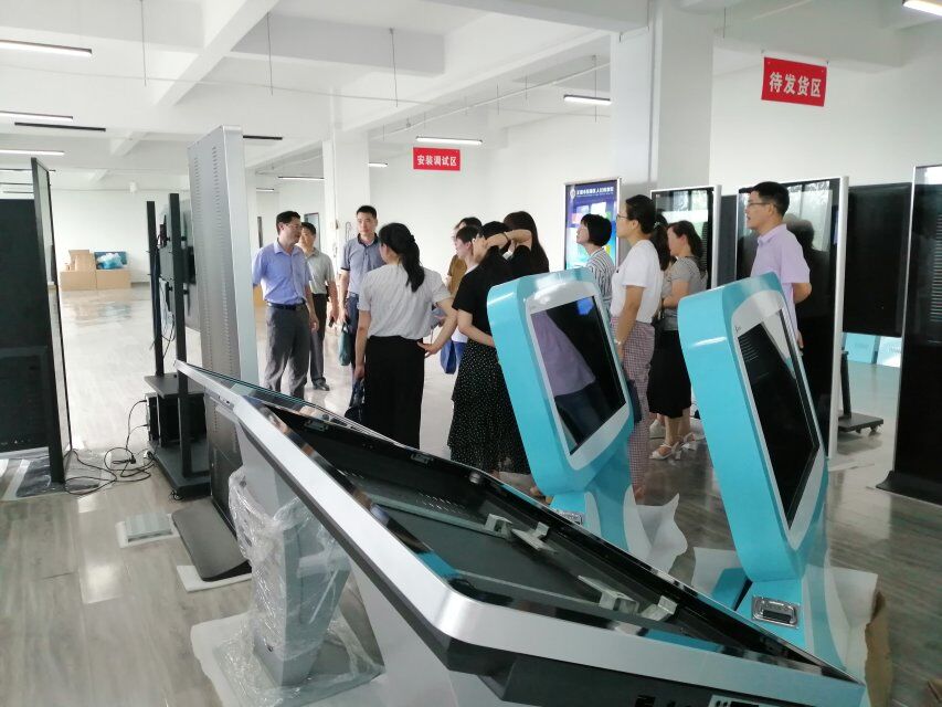 肥西縣人社局等一行領導,參觀了公司的觸控設備、多媒體顯示終端展廳,認真聽取了公司總經理陳光訓的工作匯報,并詢問了關于觸摸一體機、排隊叫號系統、廣告機和自助服務終端的生產情況以及運用領域等相關問題,對公司的生產經營情況,市場的應用前景和公司的核心技術進行詳細了解,對公司的產品表示高度認同和贊賞。