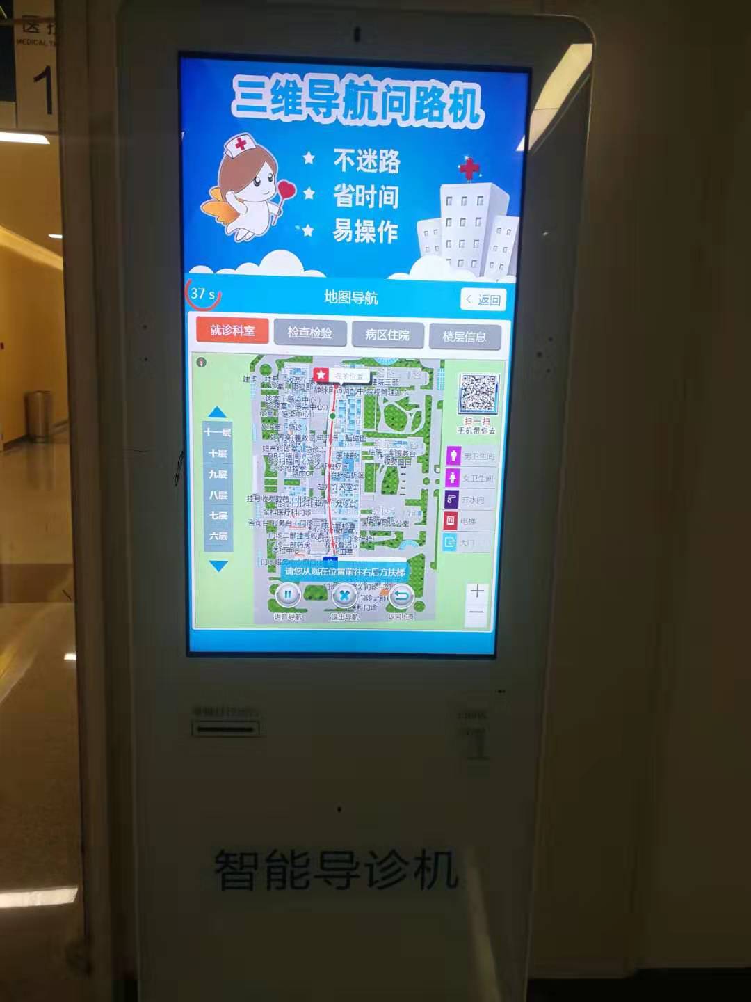 三維導行圖直觀展示了場所地區地下、地上的區域功能,內容涵蓋樓層分布、公共服務設施、洗手間、開水房、診室信息、線路查詢等,幫助人員定位“我在哪”,快速找到“要去哪”。通過三維導行圖可知,不了解場所結構的人員,要從一個樓層到另外一個樓層,找路真的需要時間。三維導行圖很有必要。同時三維導航系統設備上還附有二維碼,手機微信掃一掃。即可手機帶您去的功能。系統功能易操作,不迷路、省時間很快能幫您找到要去的地方。